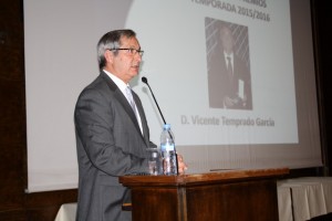 A Vicente Temprado, presidente de la Real Federación de Fútbol de Madrid, que deja el cargo después de 28 años, y que ya está en funciones por el proceso electoral, se le hizo entrega de la insignia de oro y brillantes del Comité de Árbitros de Fútbol de Madrid.
