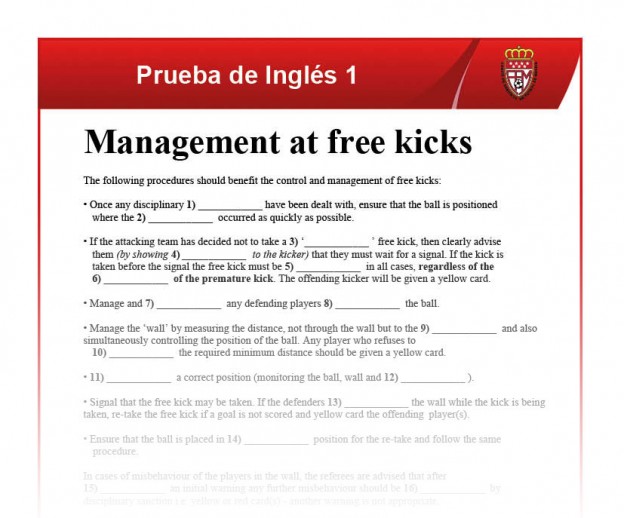 Inglés. Examen 1 15 enero, 2014 Área Técnica CAFM Talentos Prueba de conocimientos de Ingés sobre la gestión en tiros libres. En próximas fechas colgaremos las respuestas correctas. Haz click en la imagen para descargar.